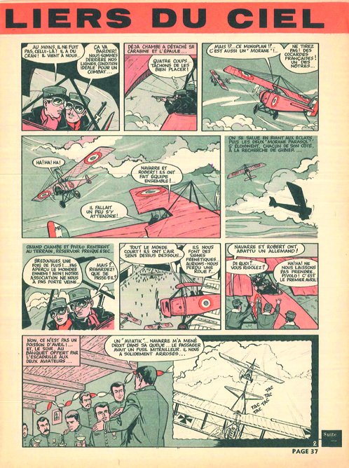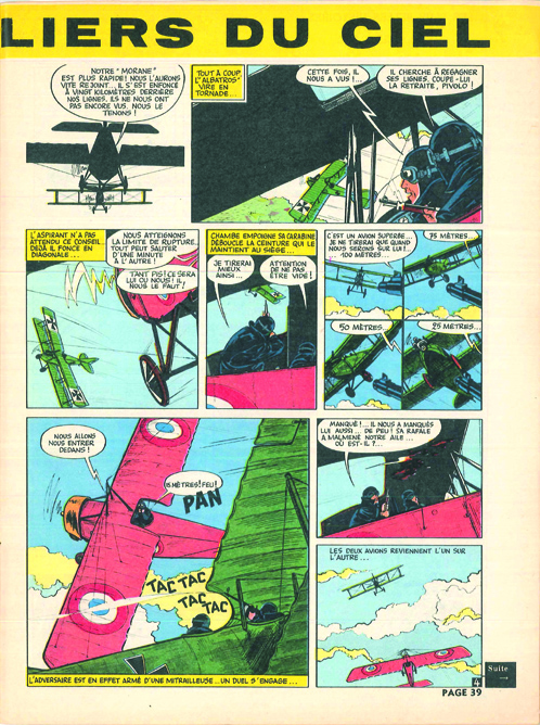 « Les plus belles histoires de l’oncle Paul », vous connaissez ? Le numéro du 22 avril 1965 (n°1410) inclut une pépite : 6 pages de bandes dessinées sur la première victoire aérienne de l’équipage Pelletier-Doisy/Chambe de l’escadrille M.S. 12, le 2 avril 1915 au sud de Reims ! Ce jour-là, ils abattent un Albatros biplace allemand, c’est la